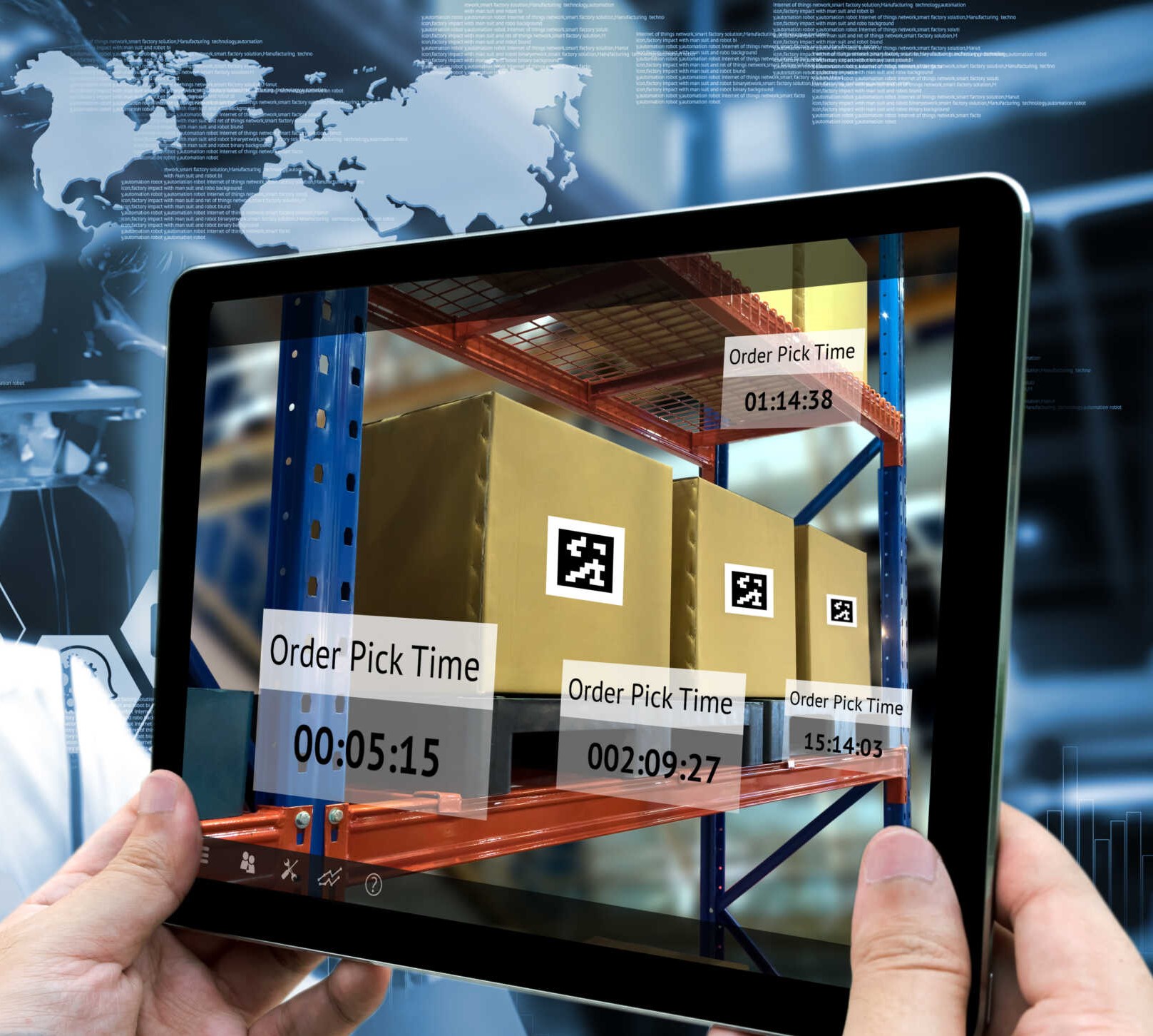 Industry 4.0 , Augmented reality and smart logistic concept. Hand holding tablet with AR application for check order pick time in smart factory.Man use AR glasses and industry infographic background. Published August 31, 2024 at 1617 × 1452 in Industry 4.0 , Augmented reality and smart logistic concept. Hand holding tablet with AR application for check order pick time in smart factory.Man use AR glasses and industry infographic background. ← Previous Next →