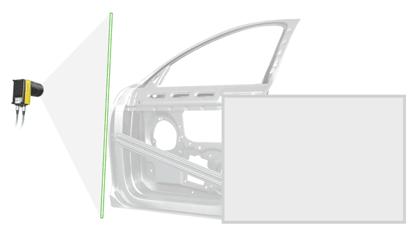 دوربین لاین اسکن یک دوربین است که تصویر را به صورت خط به خط می گیرد؛ این خط ها به طور پیوسته به کامیپوتر ارسال و تبدیل به تصویر کامل می شوند. نحوه تصویر برداری با دوربین Line Scan در تصویر زیر نمایش داده شده است. همانطور که می بینید دوربین لاین اسکن ثابت است و درب ماشین جلوی آن با سرعت ثابت حرکت می کند. بدین ترتیب تصویر درب ماشین به صورت خط به خط توسط دوربین اسکن می شود. در نهایت ما تصویر کامل درب ماشین را دریافت خواهیم کرد.